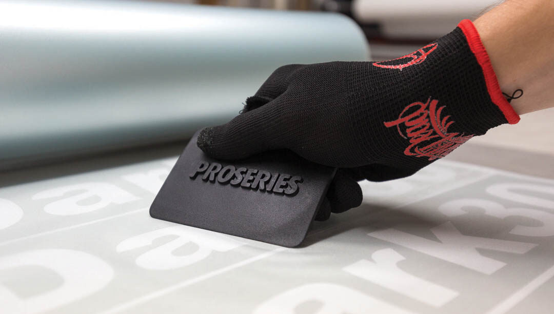 PROSERIES also makes an arm sleeve, which is made out of the same material as its gloves, to help protect an installer’s arms when reaching around doors. It also protects arms from the sticky adhesive on the back of the wrap material.
